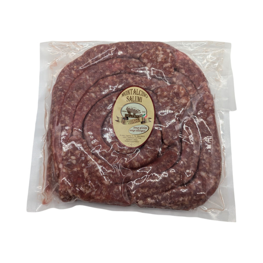 Toskanische, frische Bratwurst, auch als Salsiccia oder Salcicce bekannt. Ein traditionelles Produkt des Metzgers Montalcino Salumi. Absolut empfehlenswert.